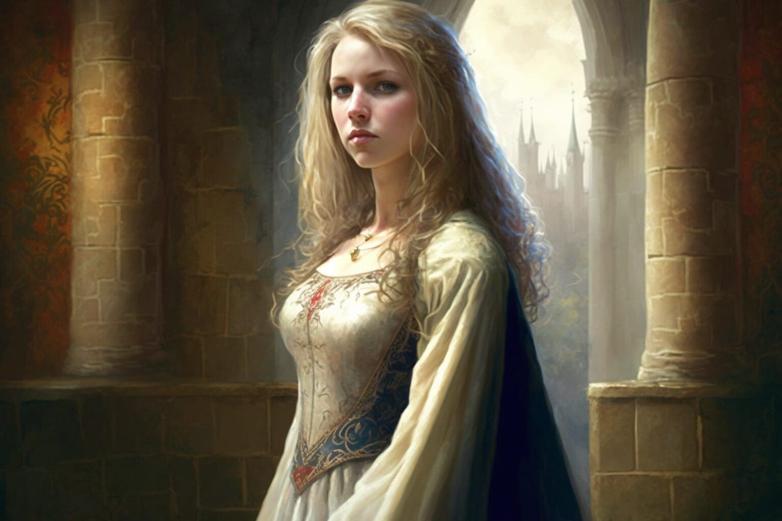 Fair skinned with long blonde hair, Guinevere’s figure was slim and tall, her bearing graceful and proud. She is strikingly beautiful, but always a little serious and sad. She does not think life is always rosy, but she never thinks of herself as lonely either. Her eyes are dark, but always burn with a profound intelligence that makes her seem older than she is. She is determined not to look past anyone or judge them because of their appearance or place in life; this leaves her open-hearted and gives her a wisdom beyond the years of most.